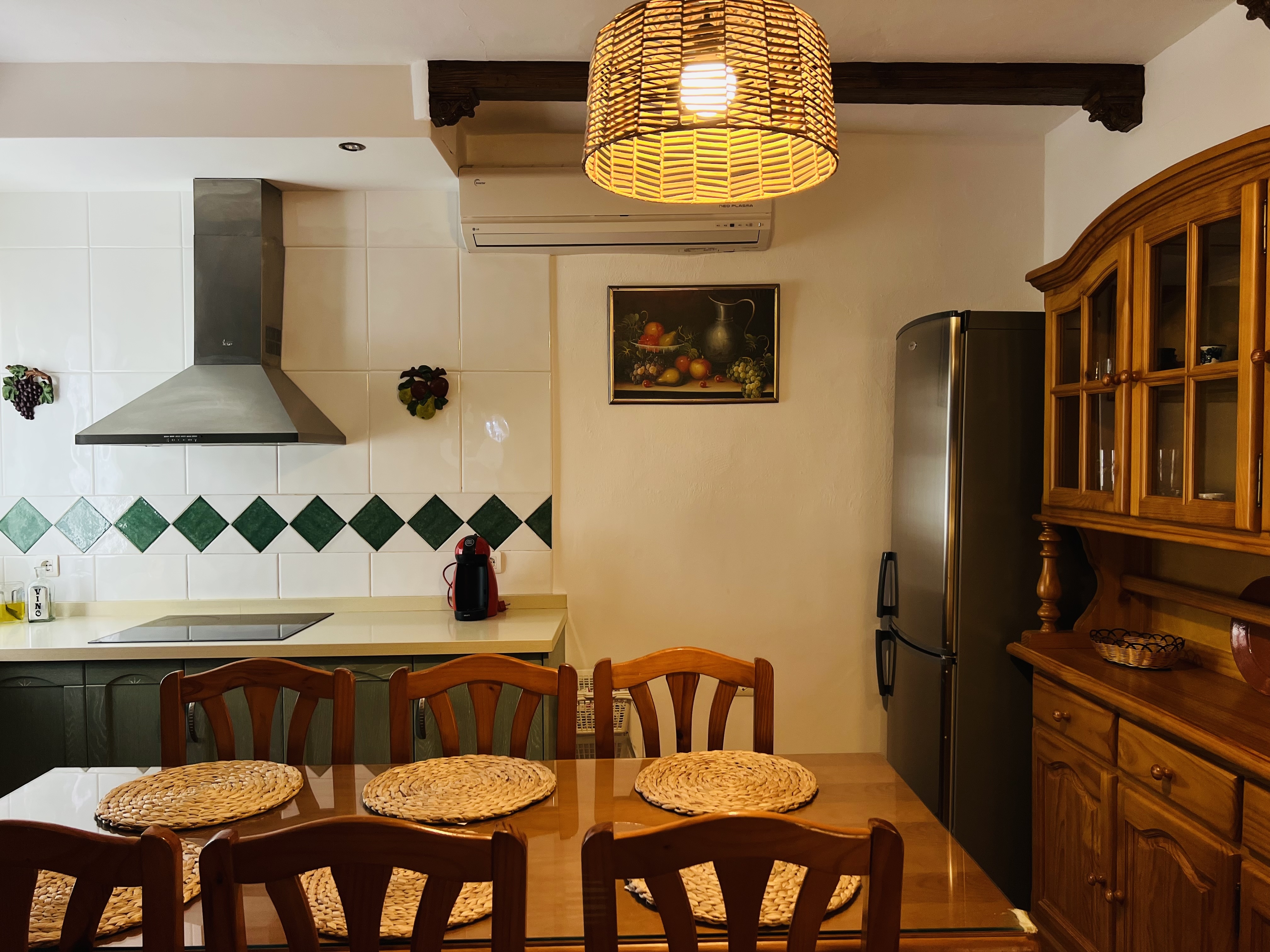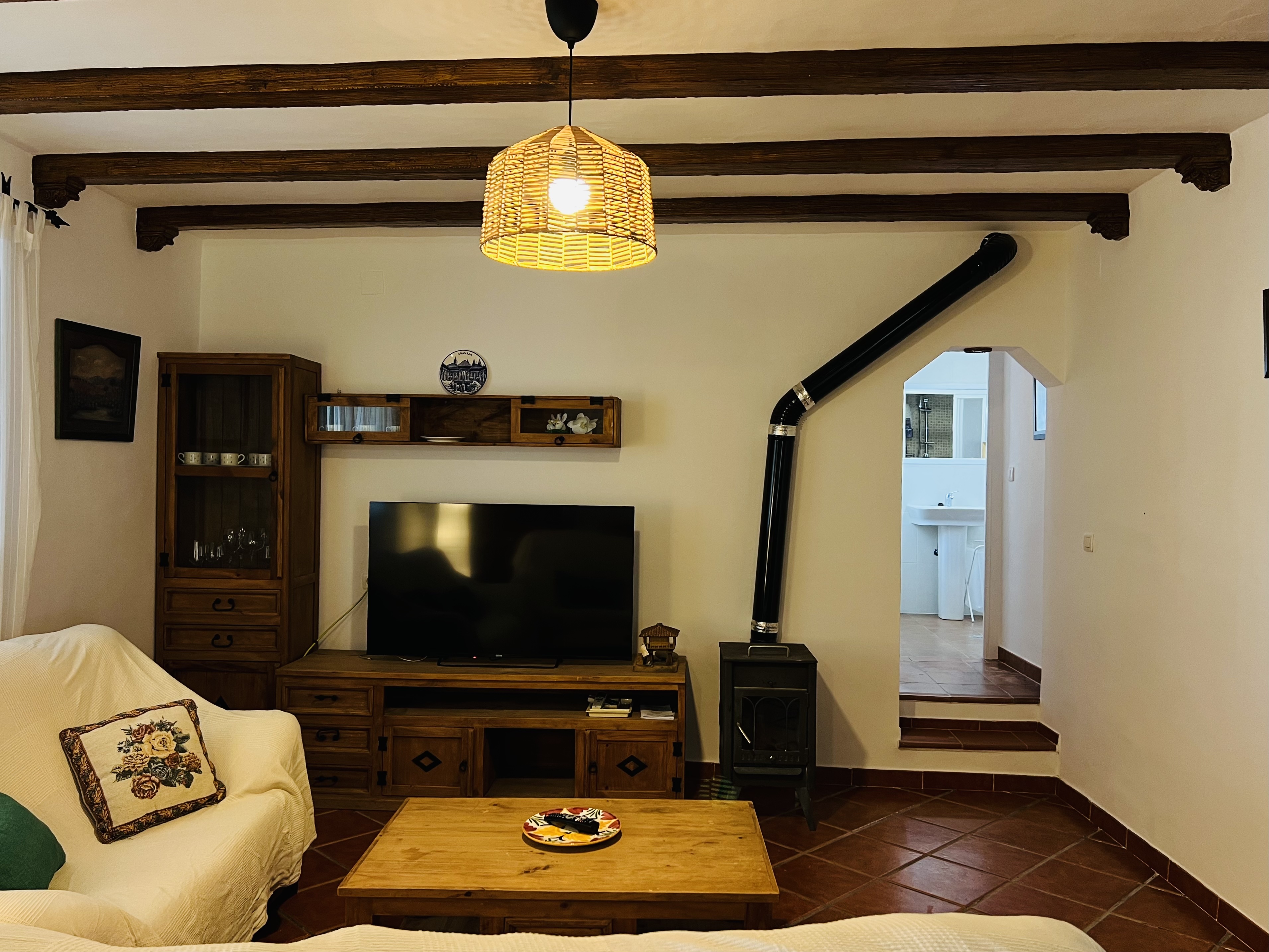 La vivienda se distribuye en dos plantas. En la planta principal encontrarás una gran terraza con zona de comedor, espacio chill out, horno de leña y acceso directo a la cocina. También cuenta con un salón con chimenea y un cuarto de baño. En la planta superior se ubican tres dormitorios, uno de ellos con terraza y vistas despejadas a las montañas, además de un baño completo.